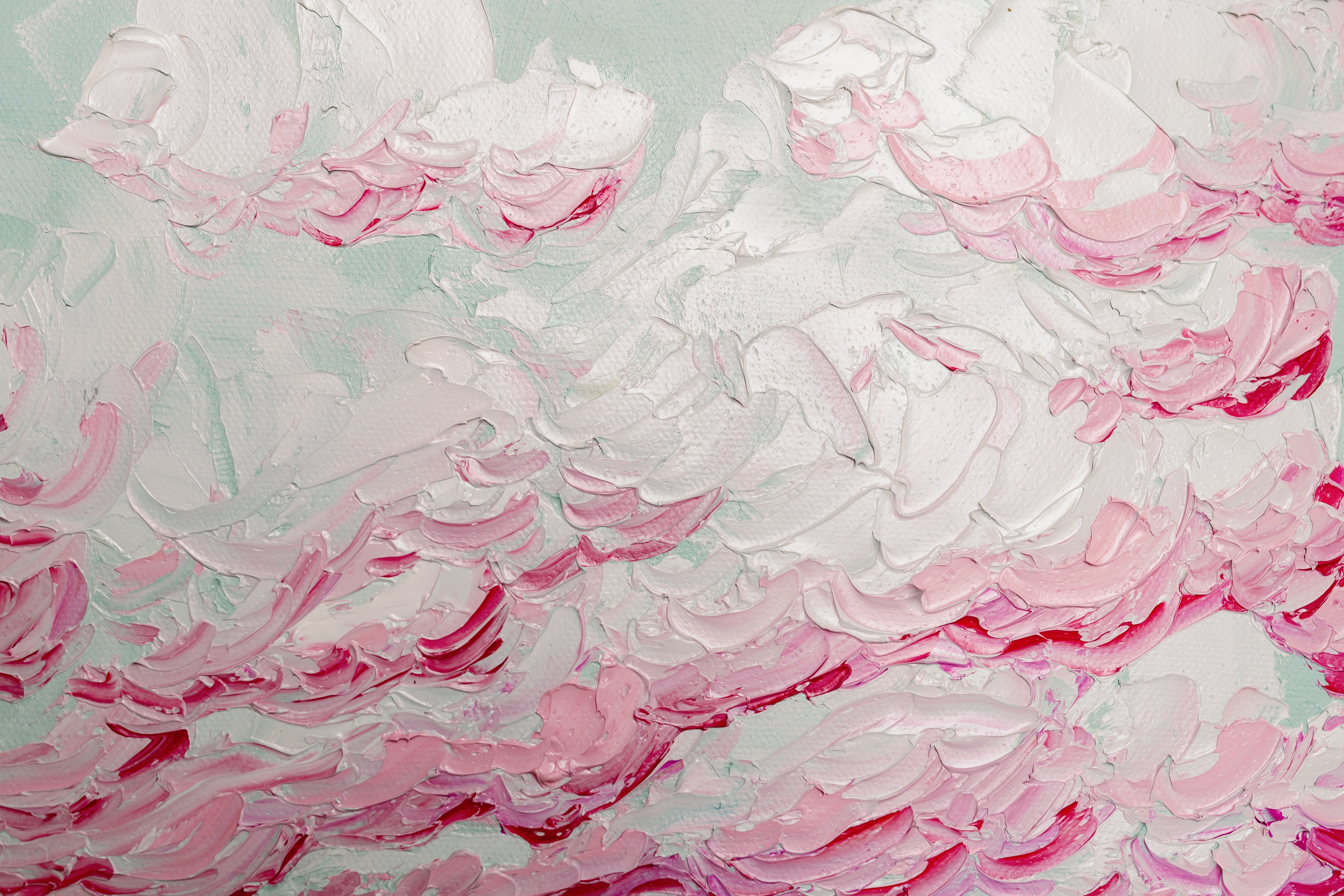 Hand-painted with palette knives and oil paints, Lauren’s work emphasizes movement, dimension, and expressive texture
